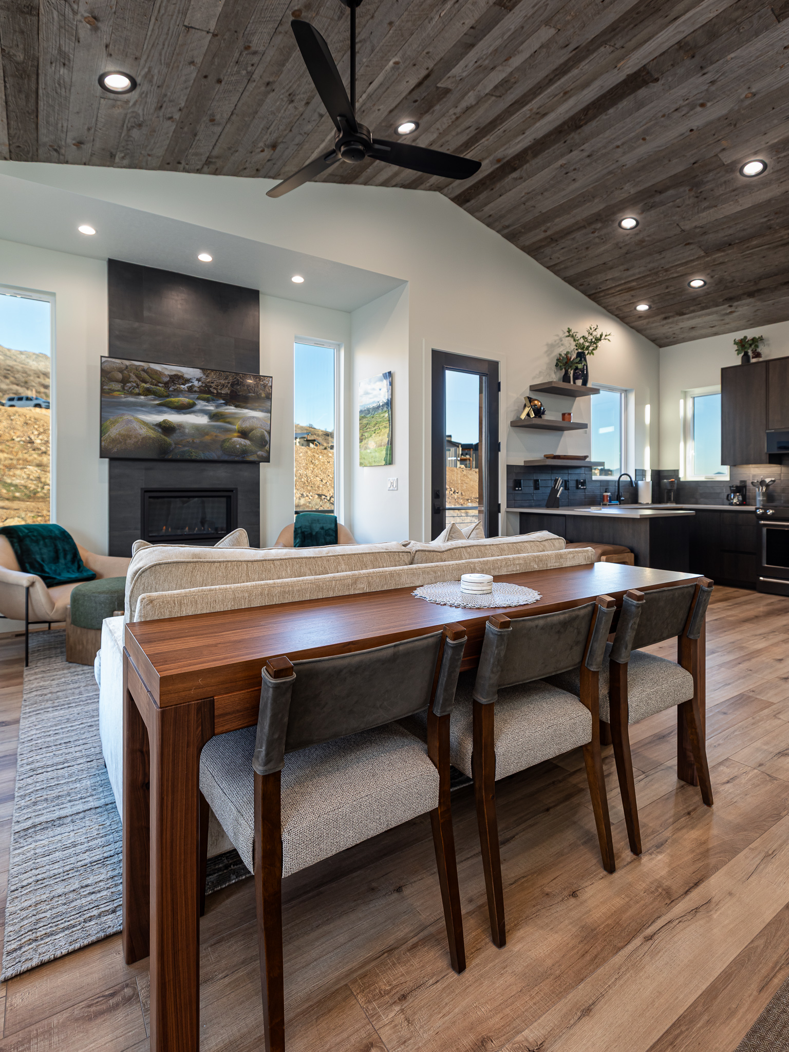 Welcome to your mountain escape in Eden, Utah in the Seven Bridges community. Discover the perfect blend of comfort, adventure, and breathtaking scenery in this beautifully appointed two bedroom and loft home located in the sought after Seven Bridges area. With space to sleep the whole family and unbeatable access to Utah's top outdoor destinations, this retreat is designed for unforgettable memories. Sleeping arrangements include a king bed with an en suite bathroom in the first bedroom, a king bed in the second bedroom with a spacious layout, two Twin XL beds in the loft area perfect for kids or adults, and a queen sleeper sofa in the living room for additional guests. Amenities include a fully equipped kitchen with pots, pans, utensils, dishes, and an old school coffee maker, a boot warmer for winter ski days, high speed WiFi, fresh towels, essential amenities, a beautiful patio with a private hot tub overlooking the valley, and stunning views of Huntsville, Pineview Reservoir, and the surrounding mountains. This home is minutes from world class outdoor recreation including Powder Mountain, Snowbasin, and Nordic Valley. Valley Market grocery store and a gas station with convenience items are just down the street. In every season, adventure is right outside your door with boating, wakesurfing, catch and release fishing, hiking, biking, skiing, snowboarding, and endless family fun. Whether you are planning a family getaway, a ski trip, or a peaceful mountain escape, this home offers comfort, convenience, and charm to make your stay one you will remember for a lifetime.